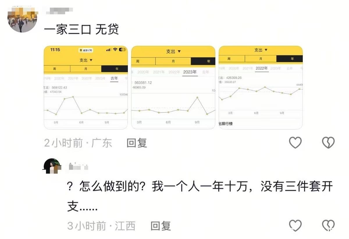 更有家庭用户晒出自家账单反击:“我们一家三口全年总支出也就四五十万,你一个人花的钱,快赶上我们全家一年的开销了!”