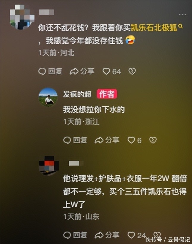 的确,一年近40万的消费水平,远超普通工薪阶层承受能力。难怪阿超算完账后直言“感觉天都塌了”。可他没想到的是,真正的打击还在评论区——另一半的“天”也跟着塌了。